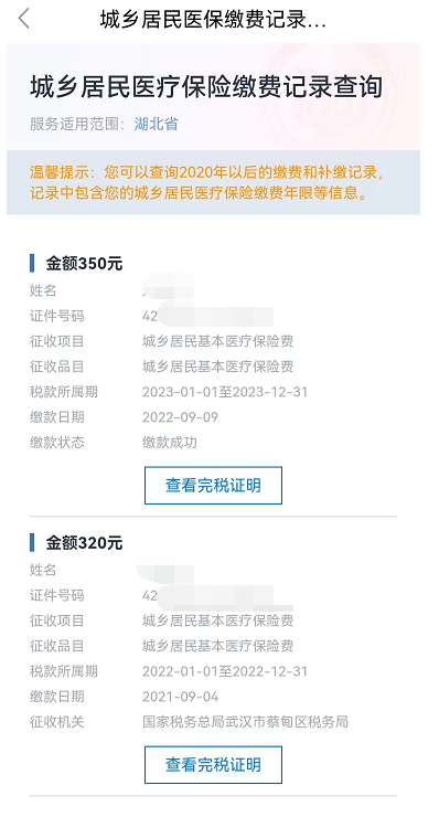 武汉居民医保缴费完税证明查询打印指南