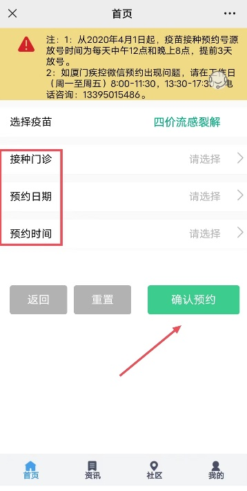 第五步:点击要预约的疫苗,进入疫苗预约界面,选择接种门诊、预约日期和预约时间。点击“确认预约“就完成了疫苗预约。