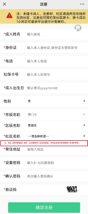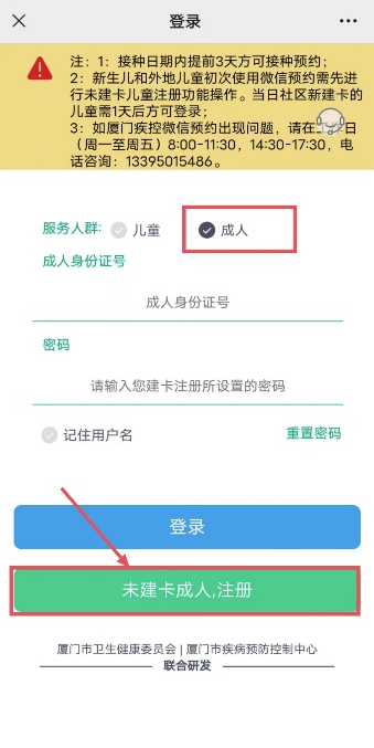 第二步:未注册建卡的要先注册建卡,分为儿童和成人两类。