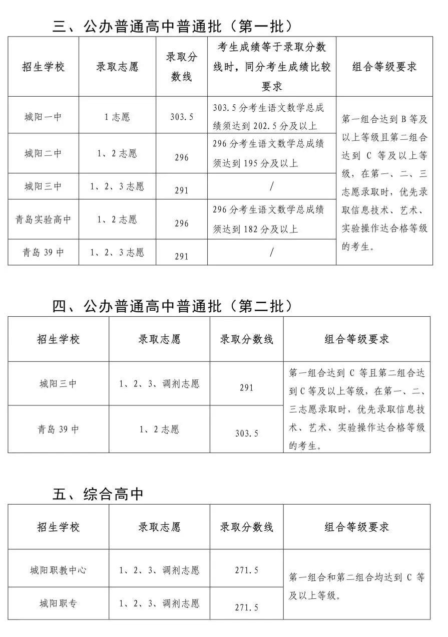 青岛市城阳区2022年普通高中学校招生录取分数线公告