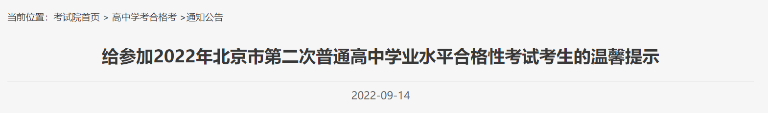 给参加2022年北京市第二次普通高中学业水平合格性考试考生的温馨提示