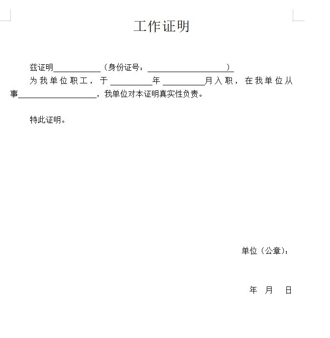 三、工作证明