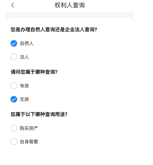 (2)点击查询类型:自然人,无房,自身需要