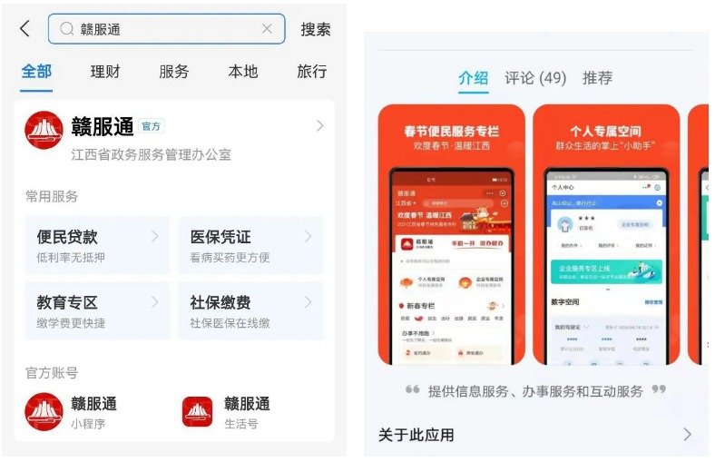 第一步:支付宝搜索“赣服通”或应用市场下载“赣服通”APP,进入平台。