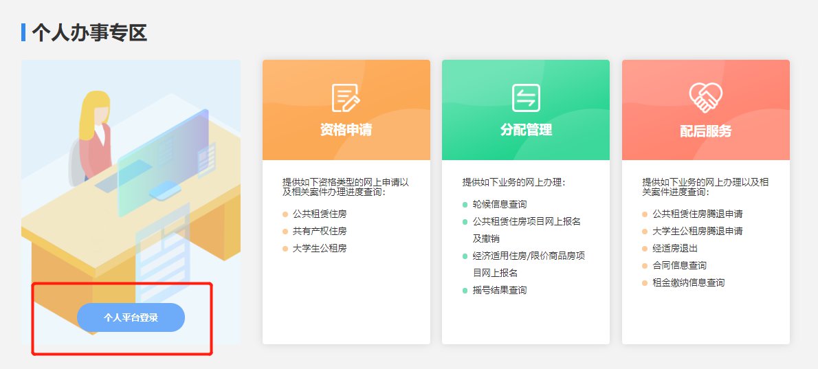 1、进入西安市保障性住房网上服务平台,选择【个人平台登录】