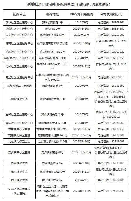 赤坭镇、花东镇、狮岭镇、梯面镇、花山镇、炭步镇的居委(城镇地区)户籍女性前往居住所在镇的卫生院咨询和预约。