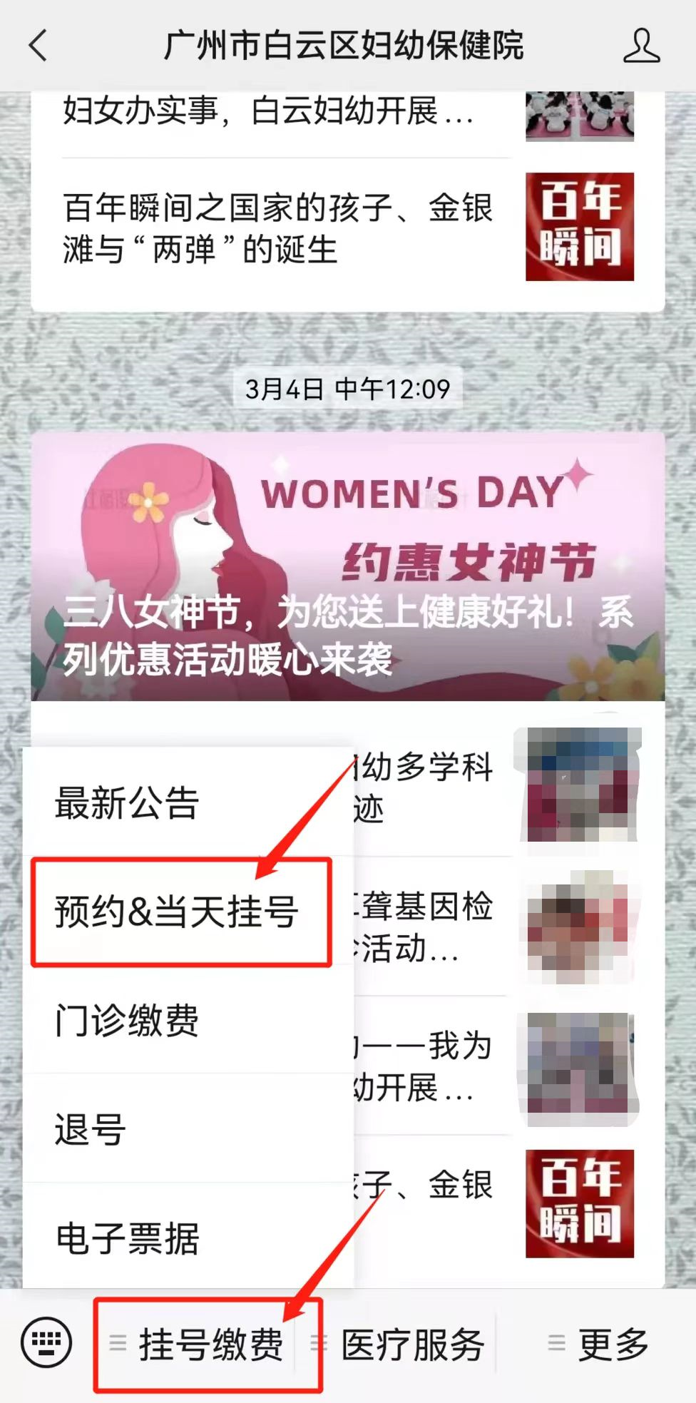 第一步:关注“广州市白云区妇幼保健院”微信公众号。