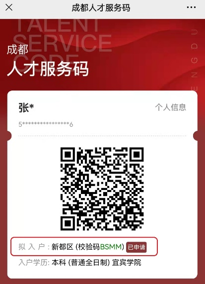 1、经过验证的“成都人才服务码”(市人社局指定 网站:点击进入申请)