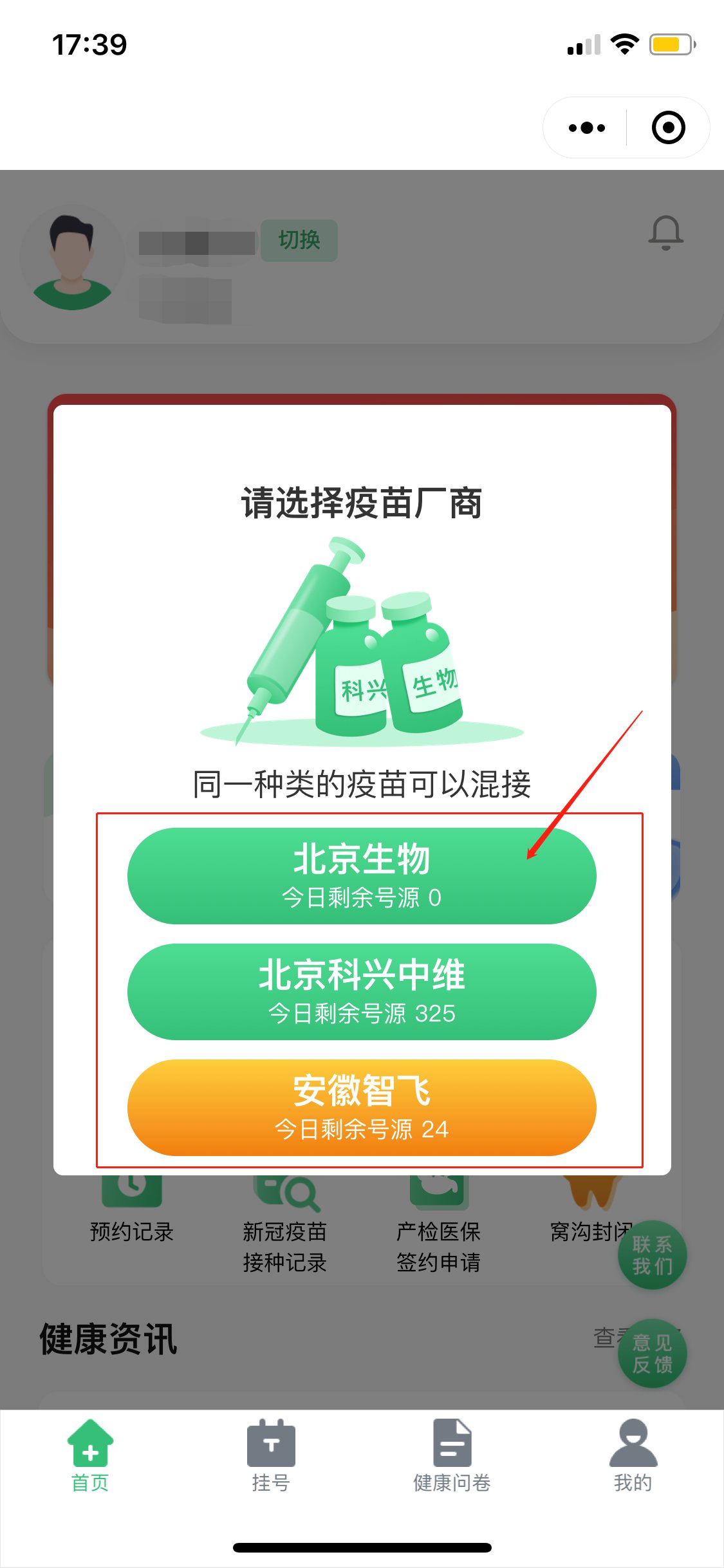 步骤2 选择疫苗厂商(同一种类的疫苗可以混接)