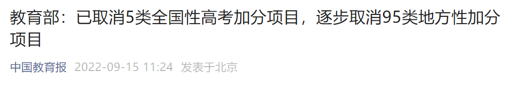 教育部:已取消5类全国性高考加分项目,逐步取消95类地方性加分项目