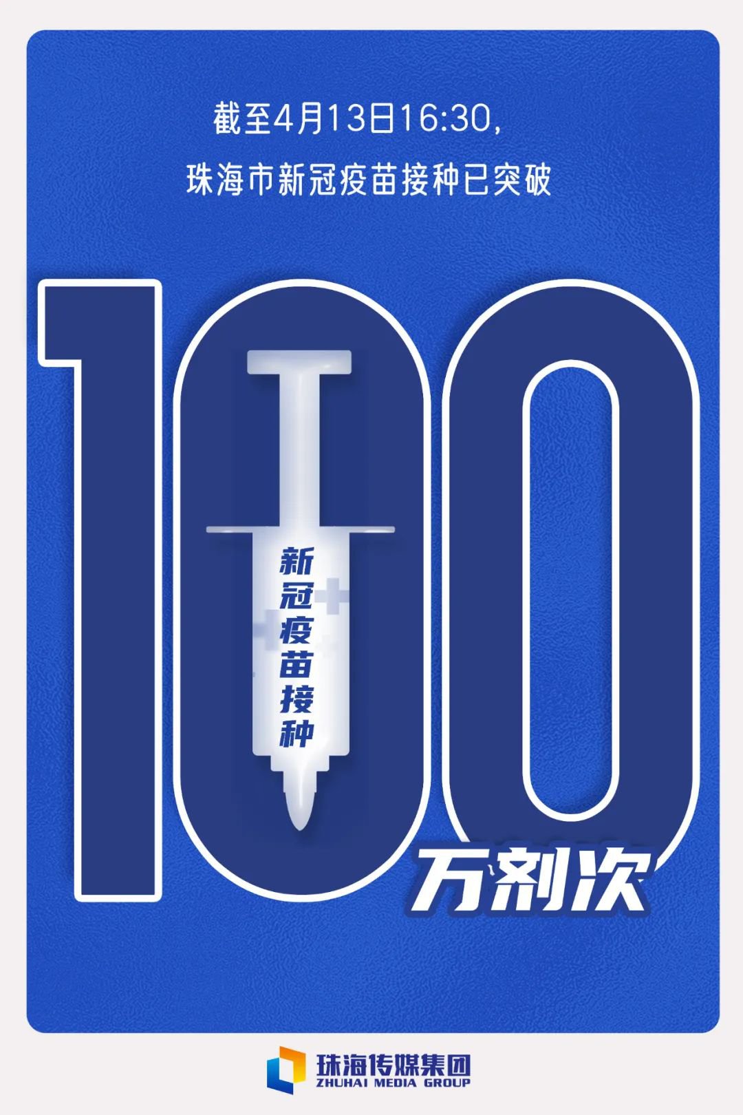 截至4月13日16:30 ,珠海市新冠疫苗接种已突破100万剂次!