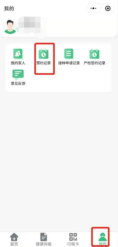 点击我的-预约记录-新冠疫苗,可查看自己及家人的预约记录。