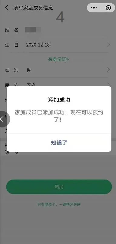 如需要为家庭成员预约,请按照以下流程添加家庭成员: