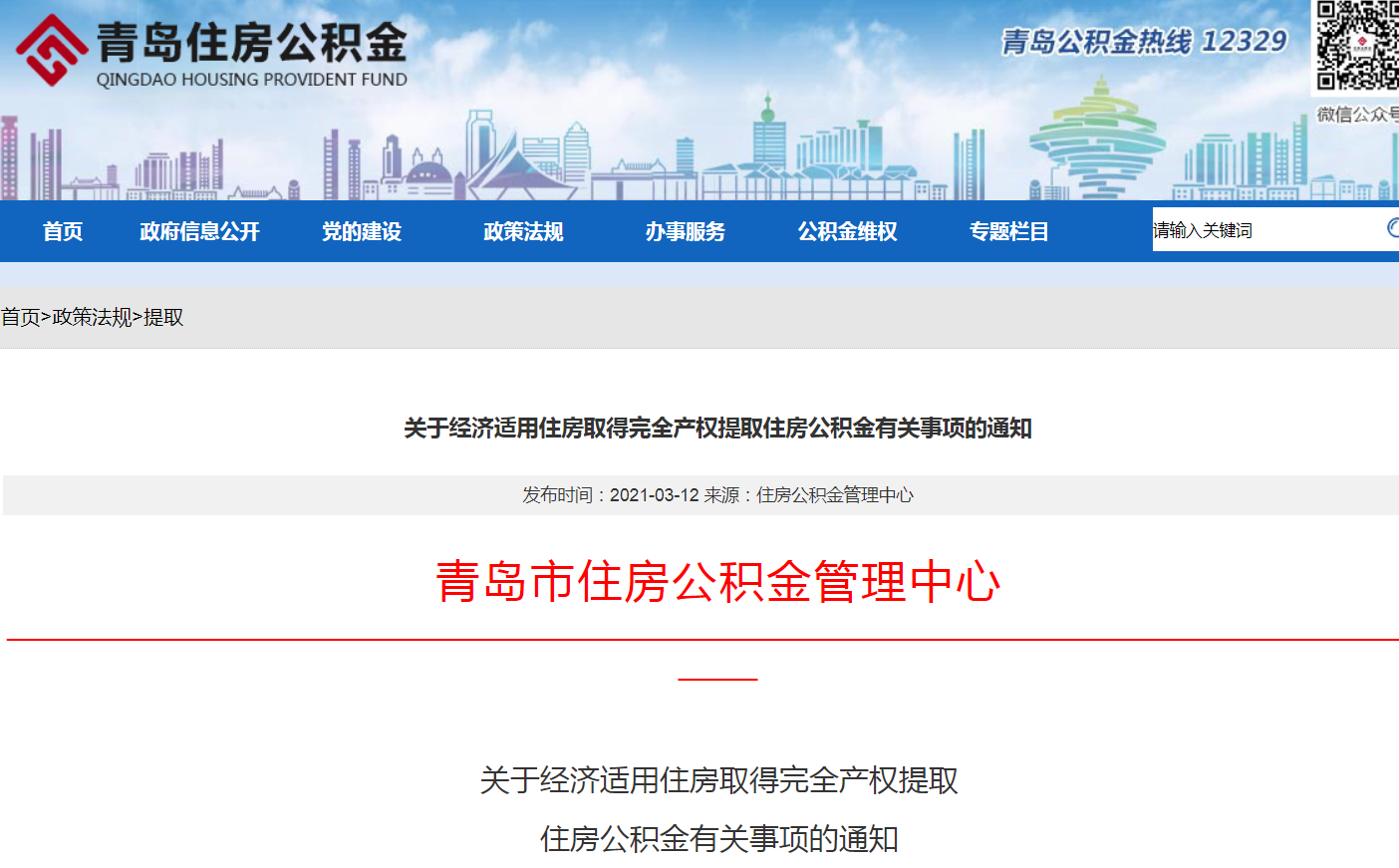 青岛市关于经济适用住房取得完全产权提取住房公积金有关事项的通知