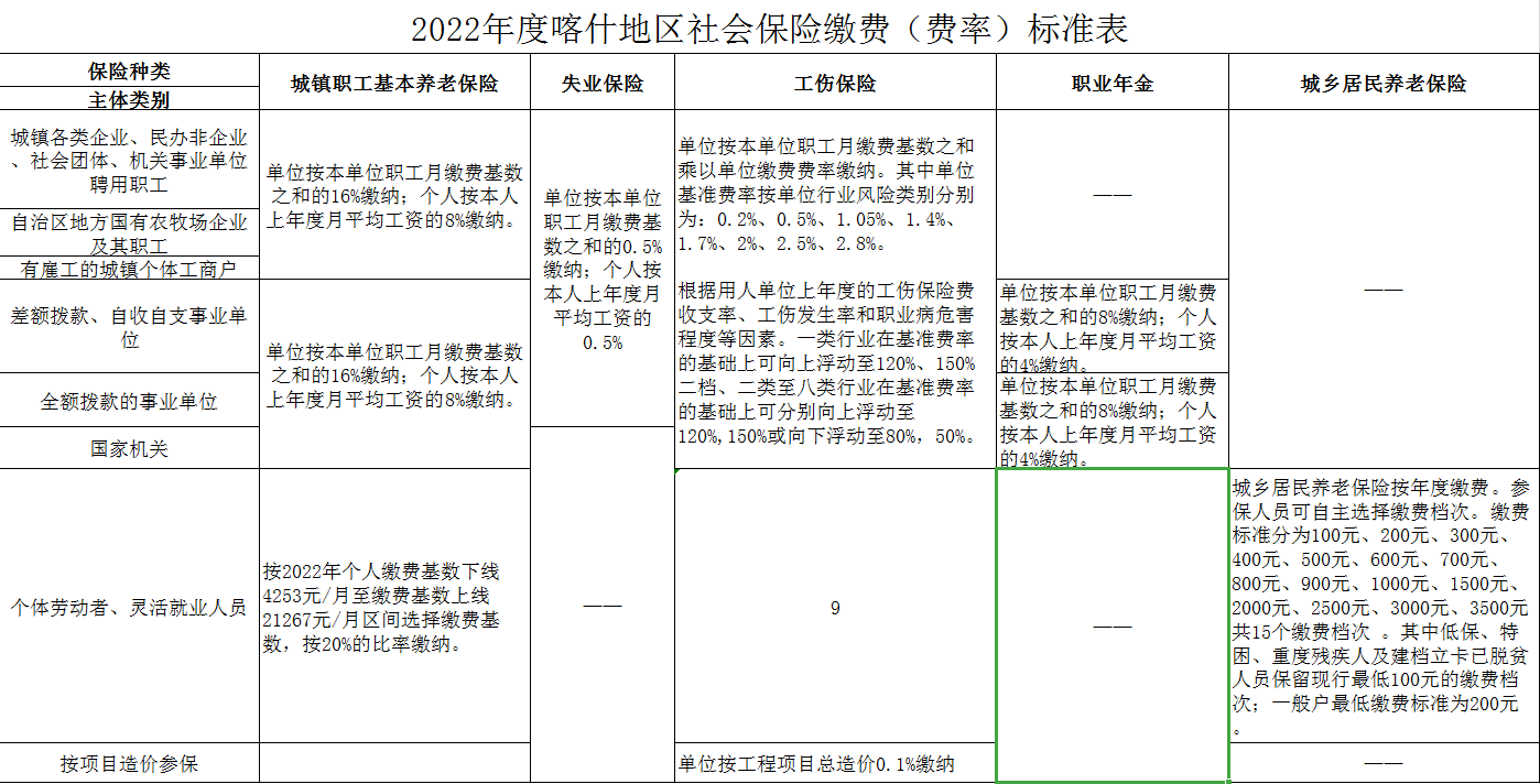2022年喀什地区社保缴费基数+费率(2018年新疆社保缴费基数)