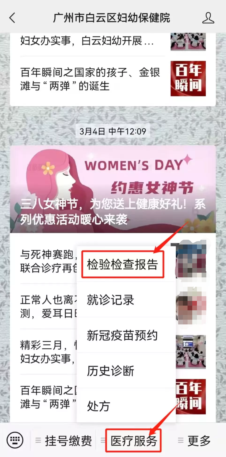 第一步:登录“广州市白云区妇幼保健院”公众号。