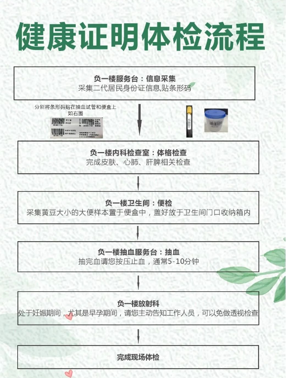 2、领证:健康证办理需空腹,四个工作日出结果(节假日、休息日顺延)。