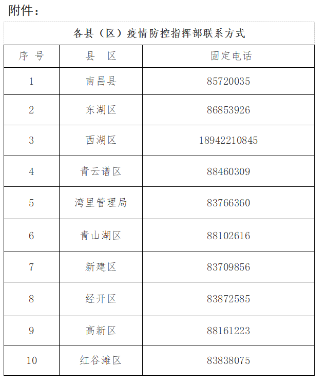 1、东湖区、西湖区、红谷滩区(不含农村地区)、青山湖区、青云谱区和高新区(不含鲤鱼洲管理处)、南昌县[含莲塘镇、向塘镇、蒋巷镇、八月湖街道、东新乡、八一乡、银三角管委会、小蓝经开区(含金湖管理处、银湖管理处)]、新建区(长堎、望城)在7月13日至15日连续开展三轮区域核酸检测。