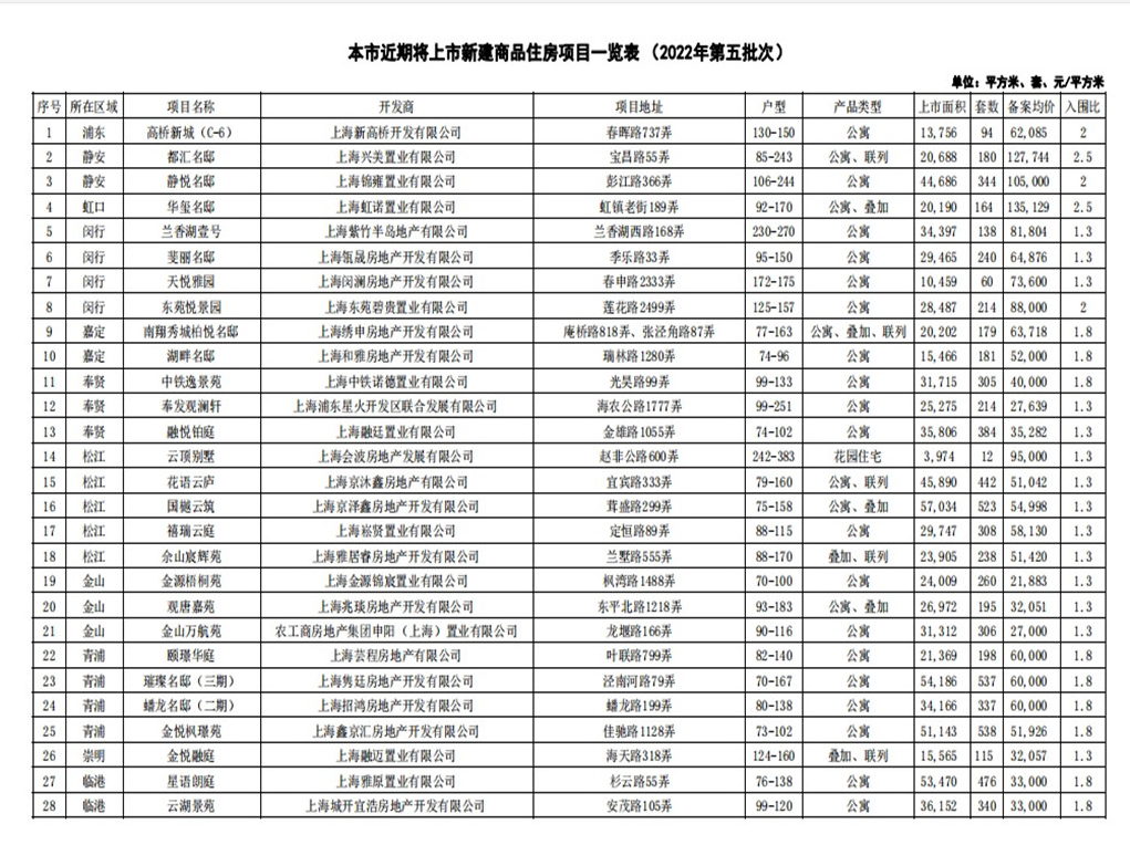 2022上海推出第五批次集中供应楼盘(上海第五批次开盘的新盘)