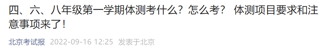 2022北京四六八年级第一学期体测项目要求及注意事项