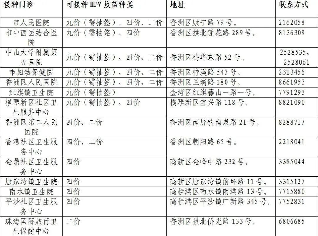 珠海四价疫苗接种地点 珠海二价疫苗接种地点