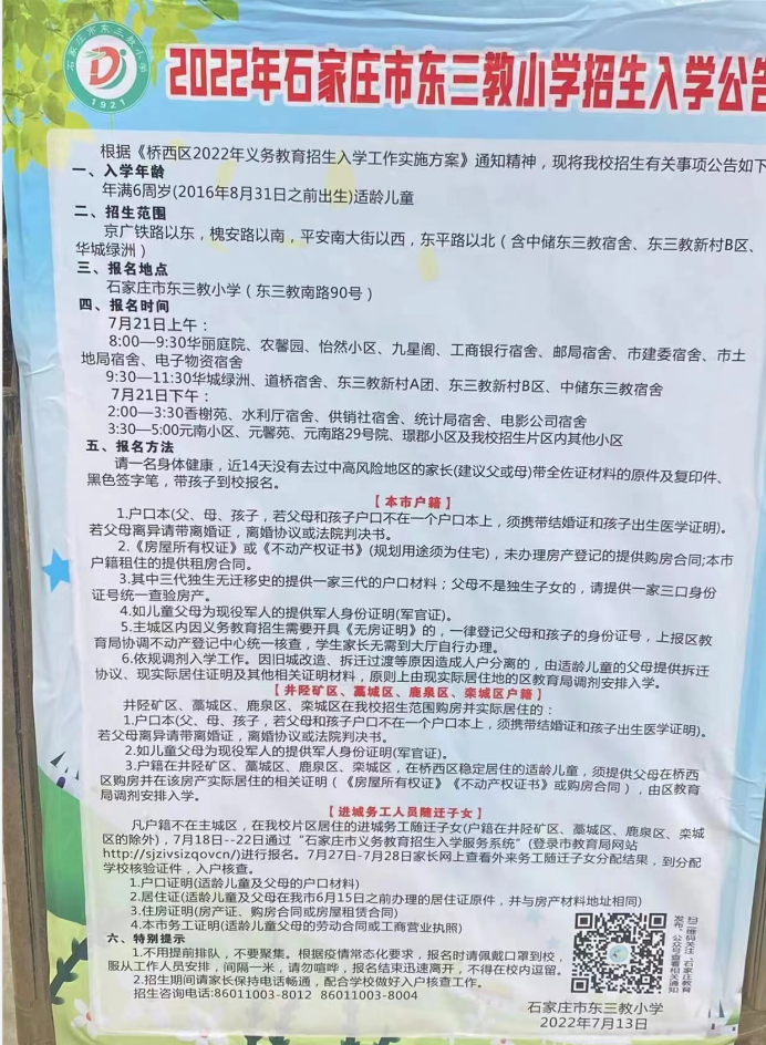2022石家庄东三教小学招生公告 石家庄东三教小学划片