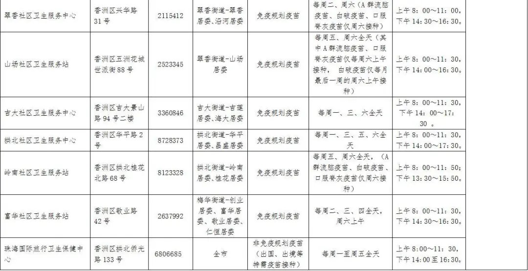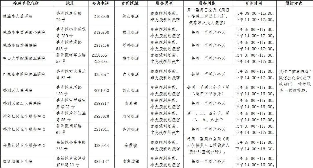 珠海疫苗接种网点一览(海珠区疫苗接种点一览表)