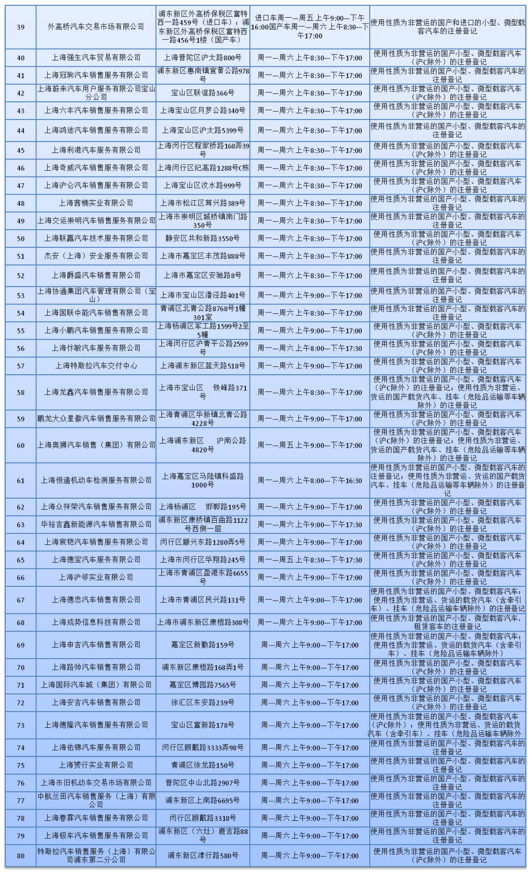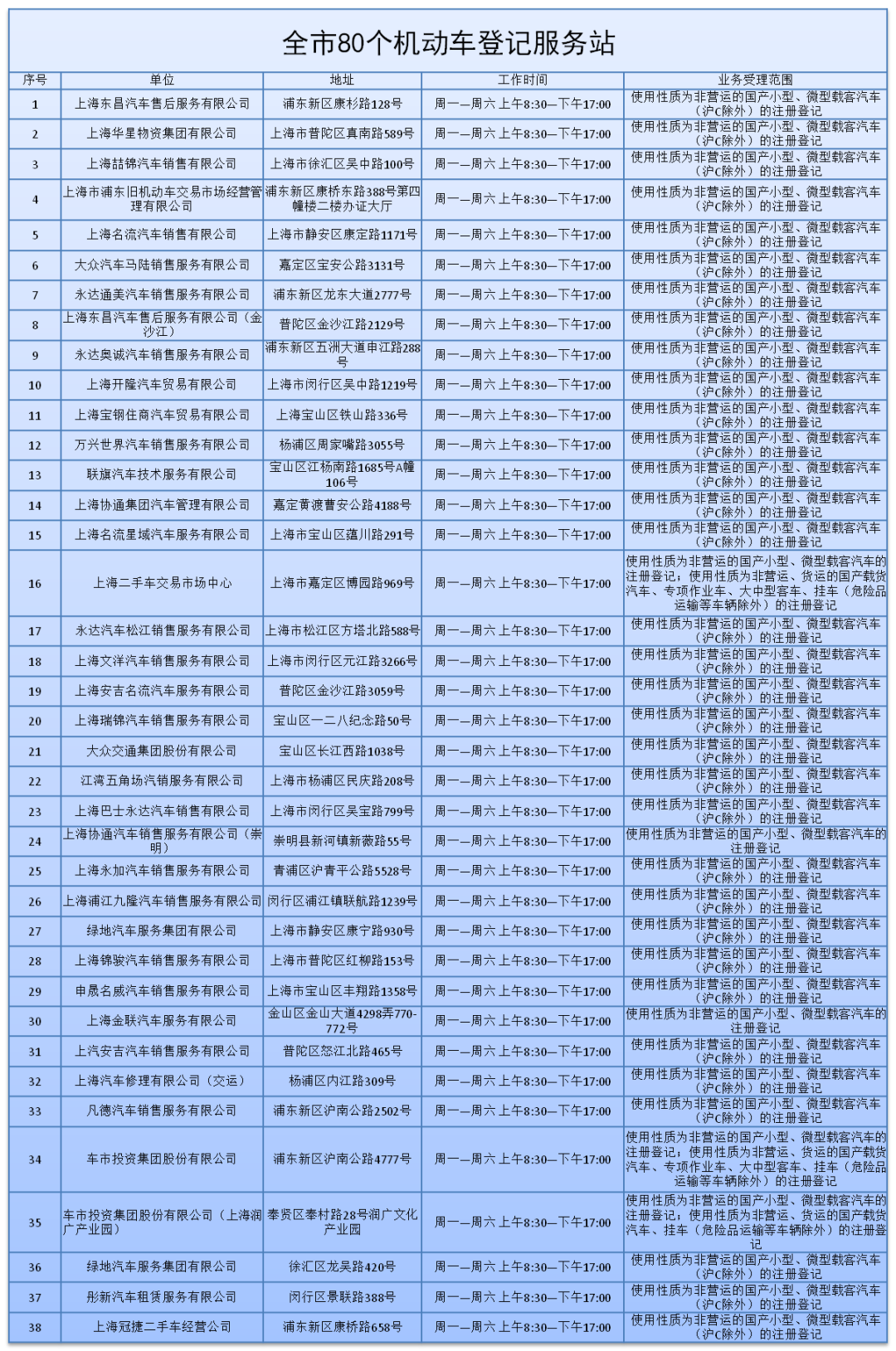 上海市80个新车上牌点地址一览(上海新车上牌点地址一览表)