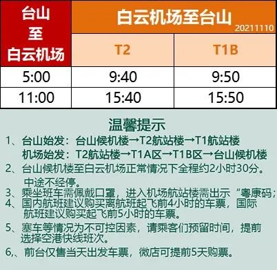 台山候机楼机场大巴调整通知(更新时间2021年11月10日)