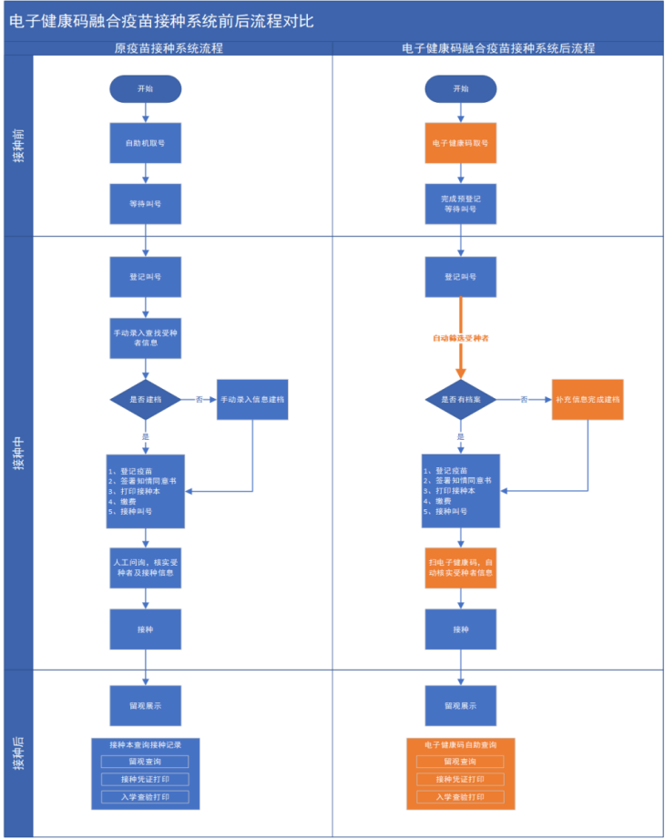 2、登记台医护人员扫描电子健康码获取居民个人信息,自动定位目标接种者,根据定位的信息登记接种,完成打印接种凭证等操作。未建立个人疫苗接种档案的,医护人员在系统确认后,自动生成个人档案;已建接种档案的,将对已有接种档案信息进行核验,如有不一致,自动弹窗提醒医护人员核对、补充完善。