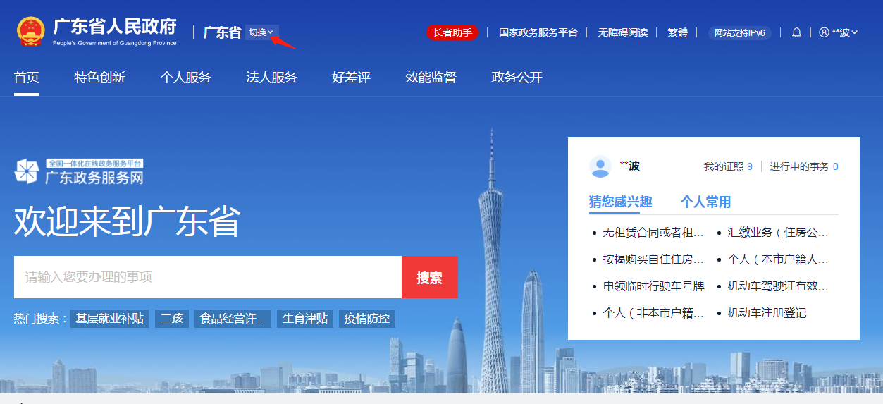 1.登录“广东政务服务网”。http://www.gdzwfw.gov.cn/