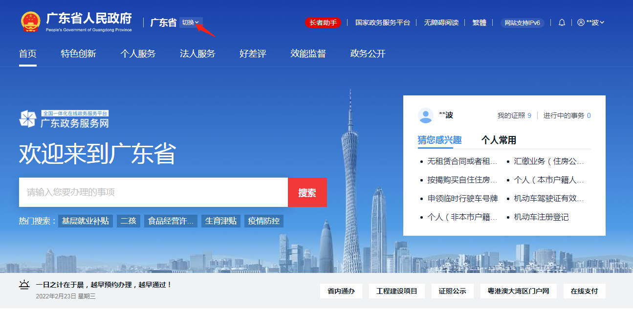 1.登录“广东政务服务网”。http://www.gdzwfw.gov.cn/