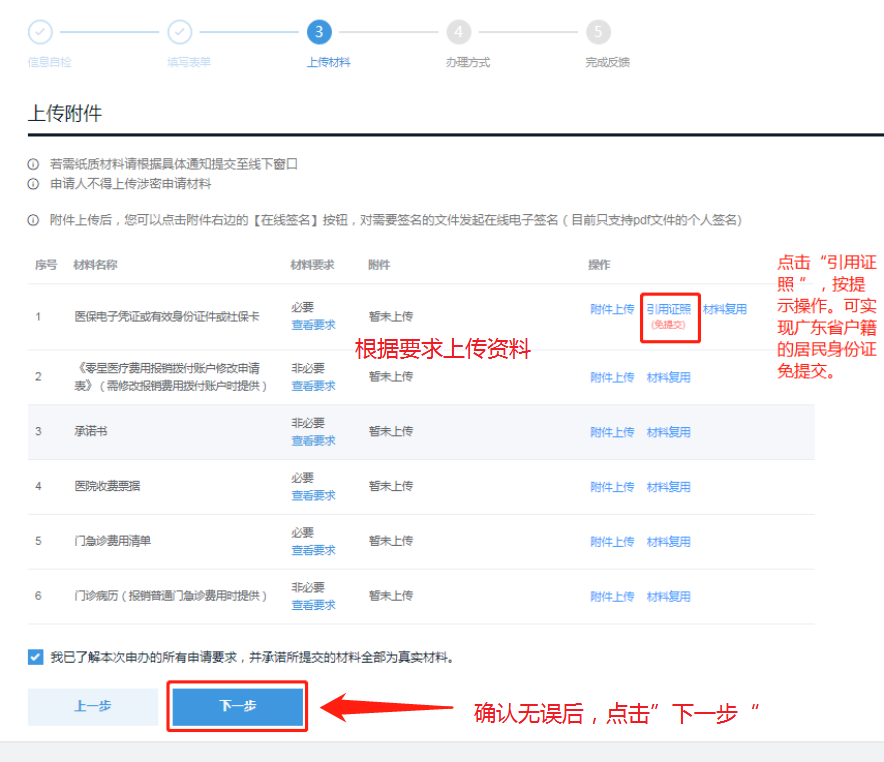 8.在上传资料界面,将所需要的资料照片或扫描件按要求进行上传。