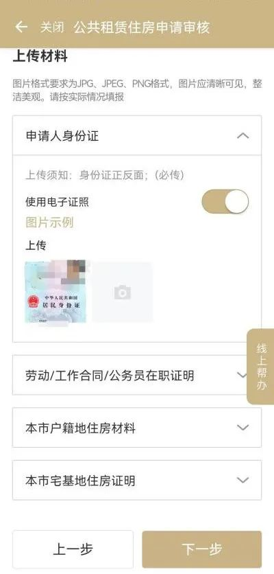 3、申请人根据实际情况选取对应的人员类型,并选择崇明区区筹房源,按提示扫描或拍照上传清晰完整的申请材料,录入基本信息、工作信息即可完成申请。提示:身份证可调用电子证照哦!