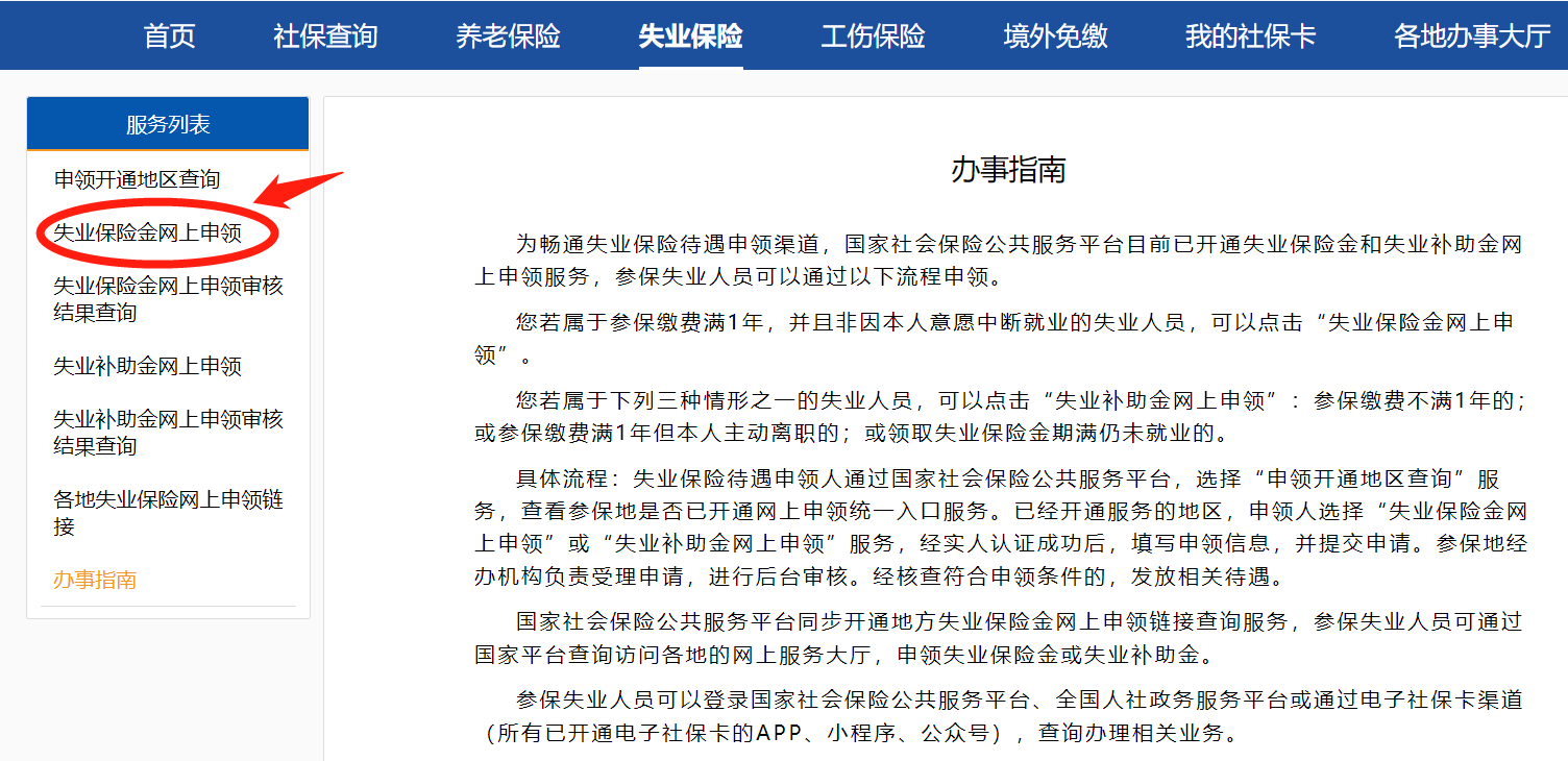 第一步:进入国家社会保险公共服务平台,然后进行实名认证登录,然后在页面中找到【失业保险】-【失业保险待遇申领】,如下图所示: