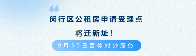 2022年9月30日(周五)实施整体搬迁,闵行区公租房受理窗口关闭,各类业务暂停办理,审核时限顺延。