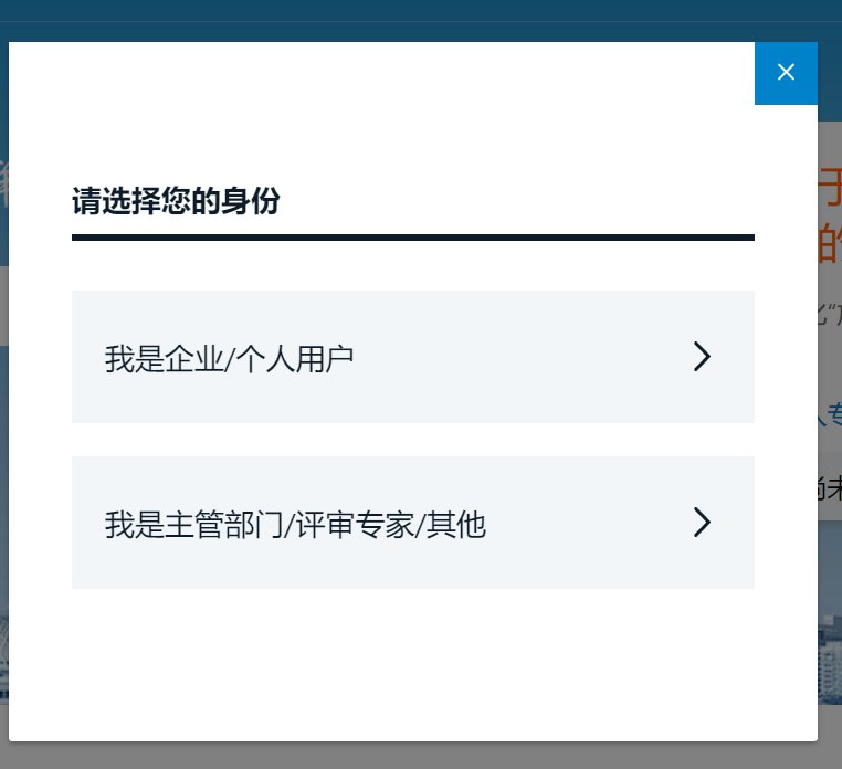 1、点击申请平台右上方进行登录,然后选择企业/个人身份登录;