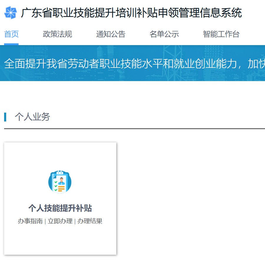 广东省职业技能提升培训补贴申领管理信息系统(http://ggfw.gdhrss.gov.cn/YCZG)