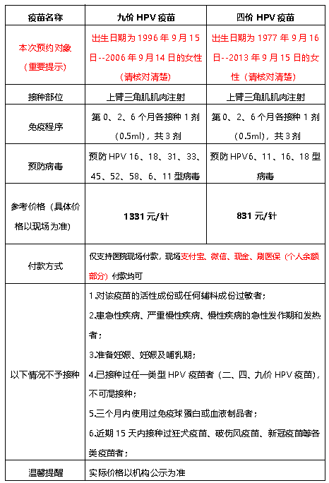 九价hpv疫苗:9月26日13:30-16:00