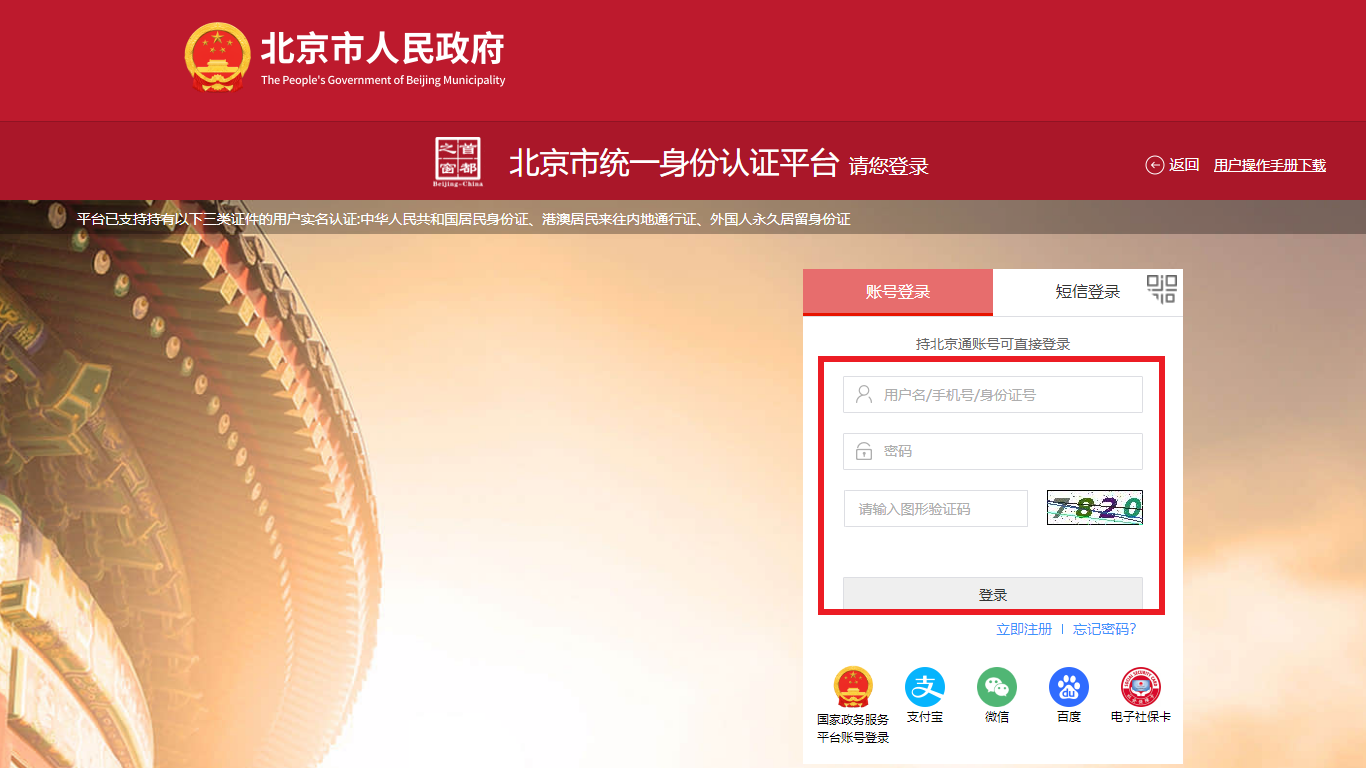 第二步,在弹出的“北京市统一身份认证”页面进行统一身份认证登录。