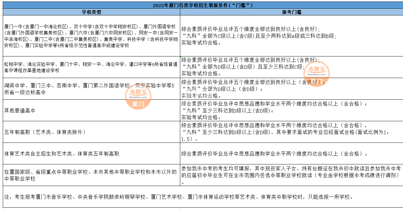 4.考生报考厦门市音乐学校、中央音乐学院鼓浪屿钢琴学校、厦门艺术学校、厦门市体育运动学校等艺术类、体育类中职学校时,只能选报一所学校。