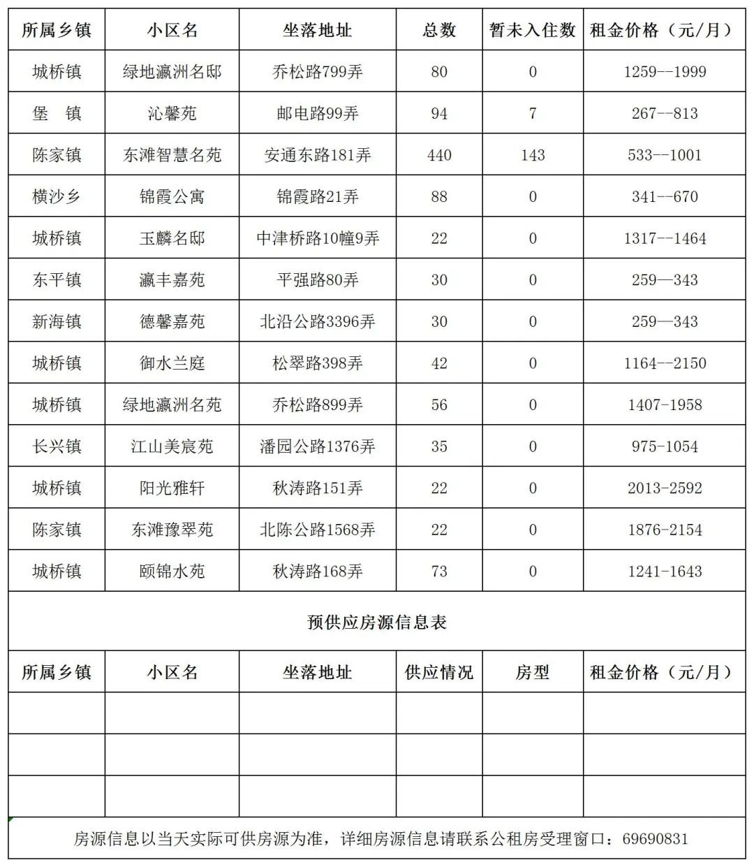 租金价格参考:下图为2022年9月崇明公租房房源信息表