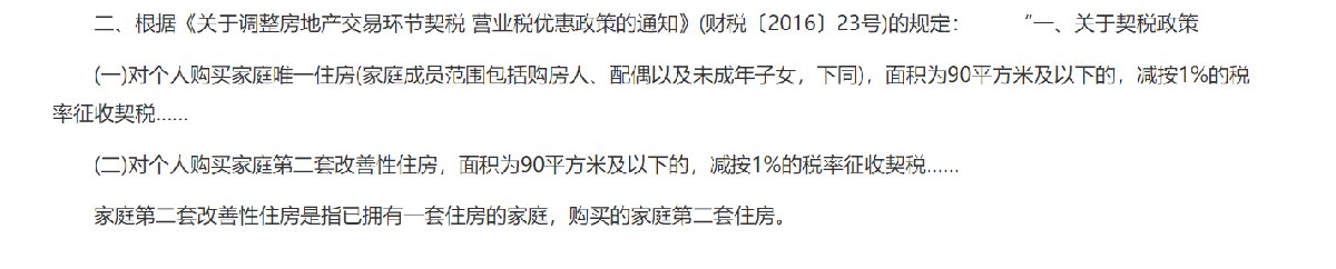 (二)对个人购买家庭第二套改善性住房,面积为90平方米及以下的,减按1%的税率征收契税;面积为90平方米以上的,减按2%的税率征收契税。