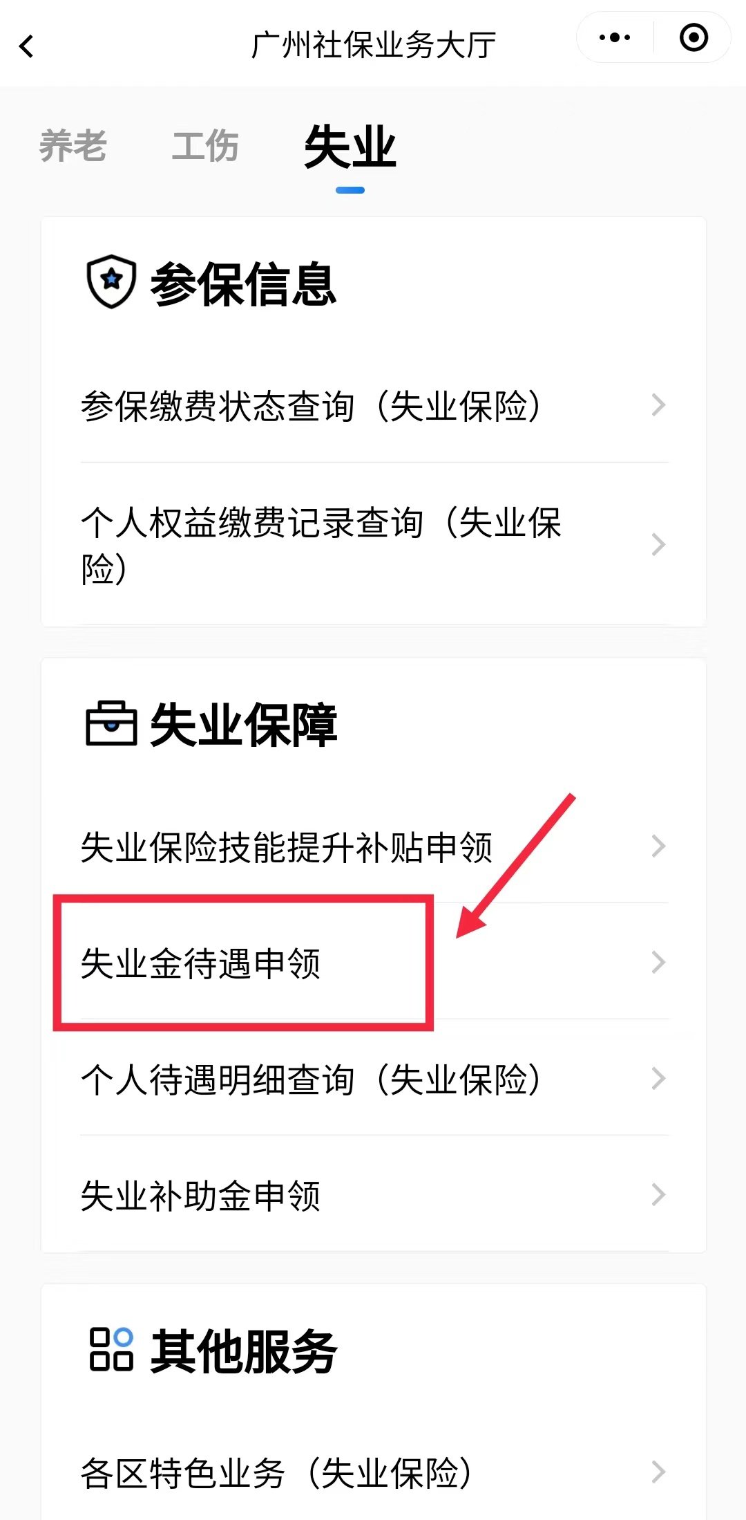 第一步:登录粤省事小程序,点击【社保】-【失业】-【失业金待遇申领】,如下图所示: