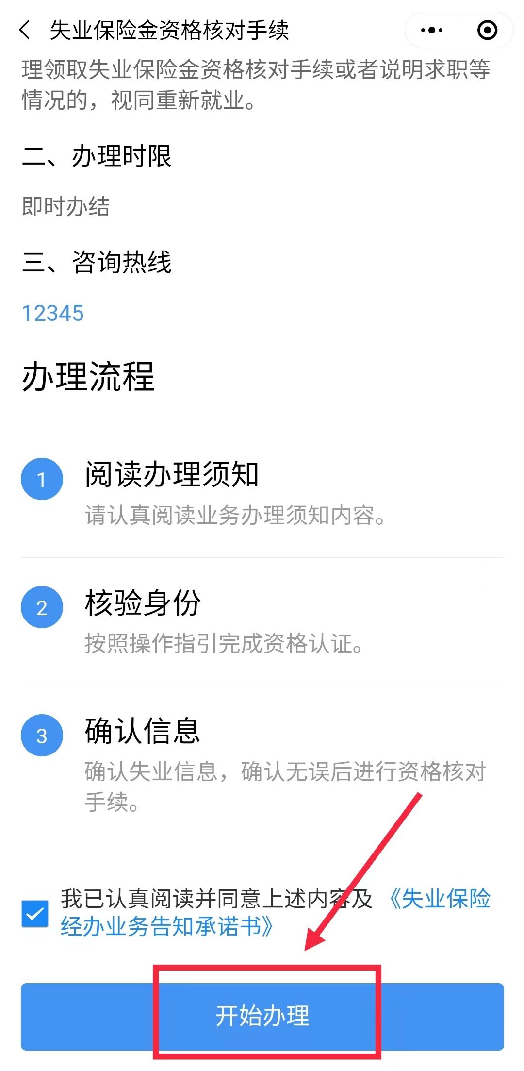 第二步:点击【失业保险金资格核对手续】-【开始办理】,如下图所示: