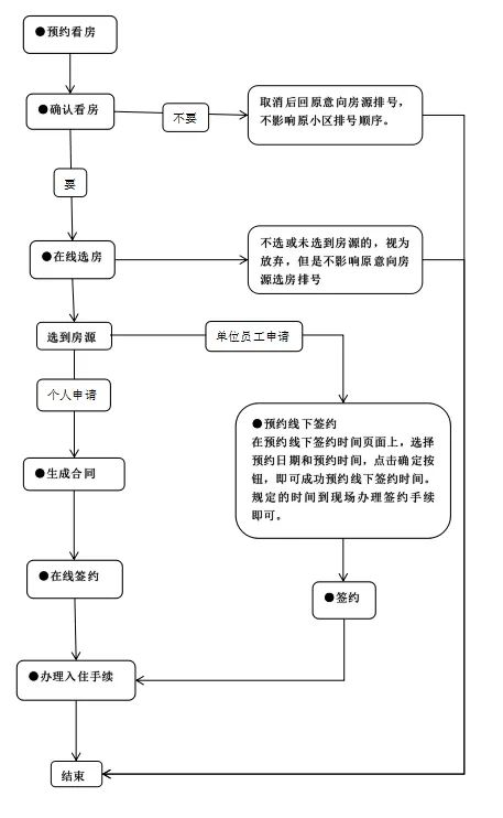 注:新开放小区选房将统一确定线上选房时间,所有已预约看房确认的轮候申请人均可按确定时间上线“抢房”,如房源数量少于看房人数,会有部分人员选不到房源,不选或未选到房源的,视为放弃,但是不影响原意向房源选房排号。