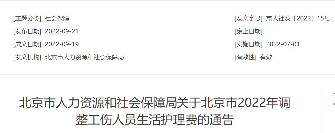 五、工伤人员生活护理费的调整自2022年7月1日起执行。
