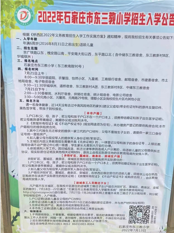 2022石家庄东三教小学招生简章 石家庄西三庄小学招生简章