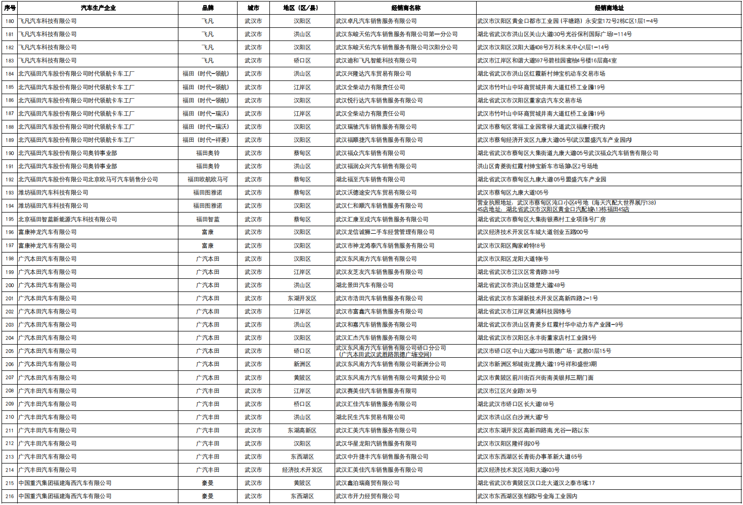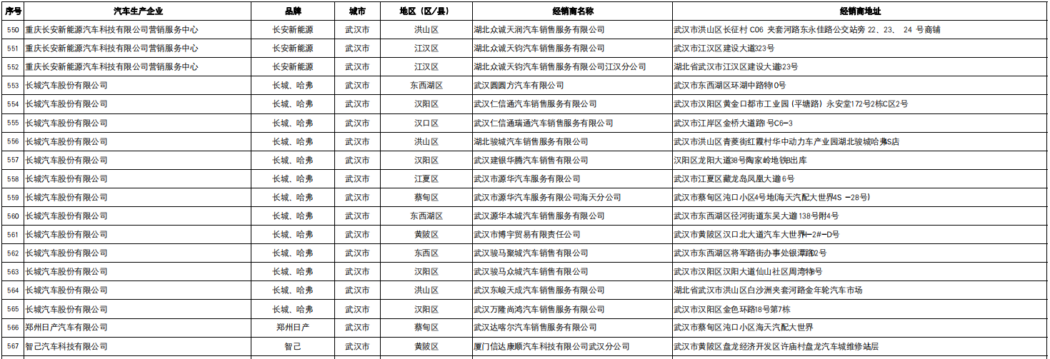 2022武汉汽车以旧换新专项行动汽车授权经销商名单如下