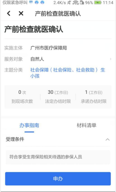 第三步:进入“医保专题”,查看“办事服务”,点击“产前检查就医确认”(如办事服务项中无“产前检查就医确认”的,可点击“更多”查看)。